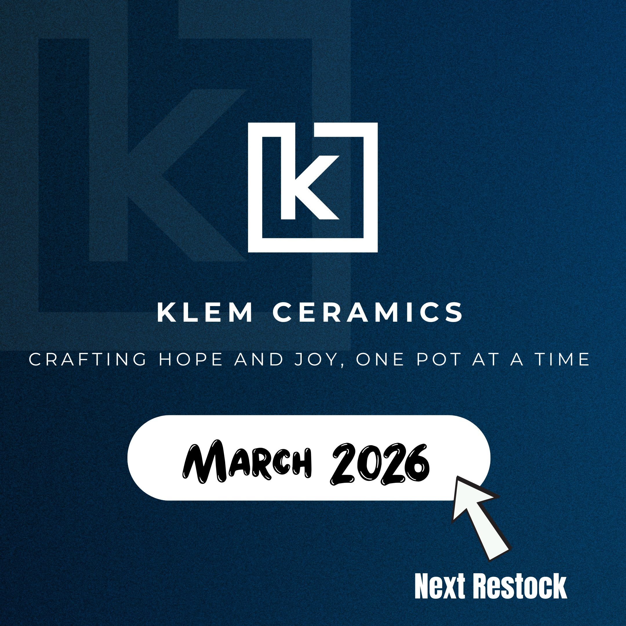 Thank you for your interest in our work! We open the shop at specific times during the year, rather than having an ongoing inventory. As part time potters, this allows us to focus our time on making, and then website/shipping.